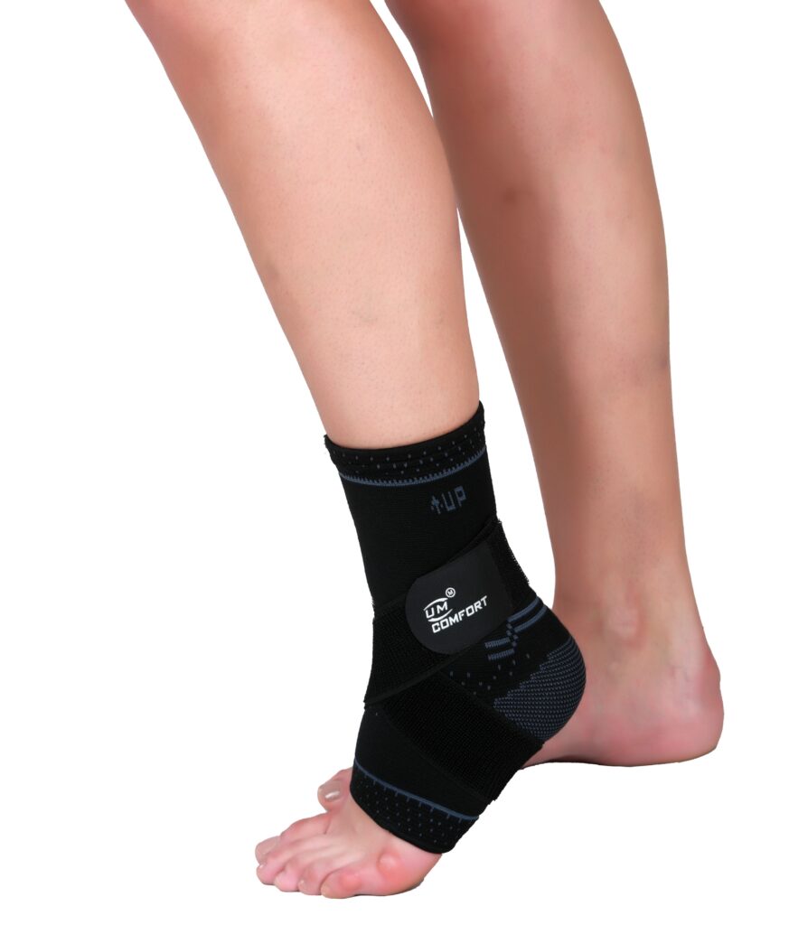 Circular knitting with mellowed heel spot, ensures snug-fitting, strong compression comfortable ankle movement and perfect conformance to the complex anatomy of the ankle elasticized loop wrap in figure of eight stabilizes ankle controls inversion/aversion & plantar flexion dermo phallic cotton ensures comfort in all weather conditions nylon outside ensures durability & nice aesthetics.