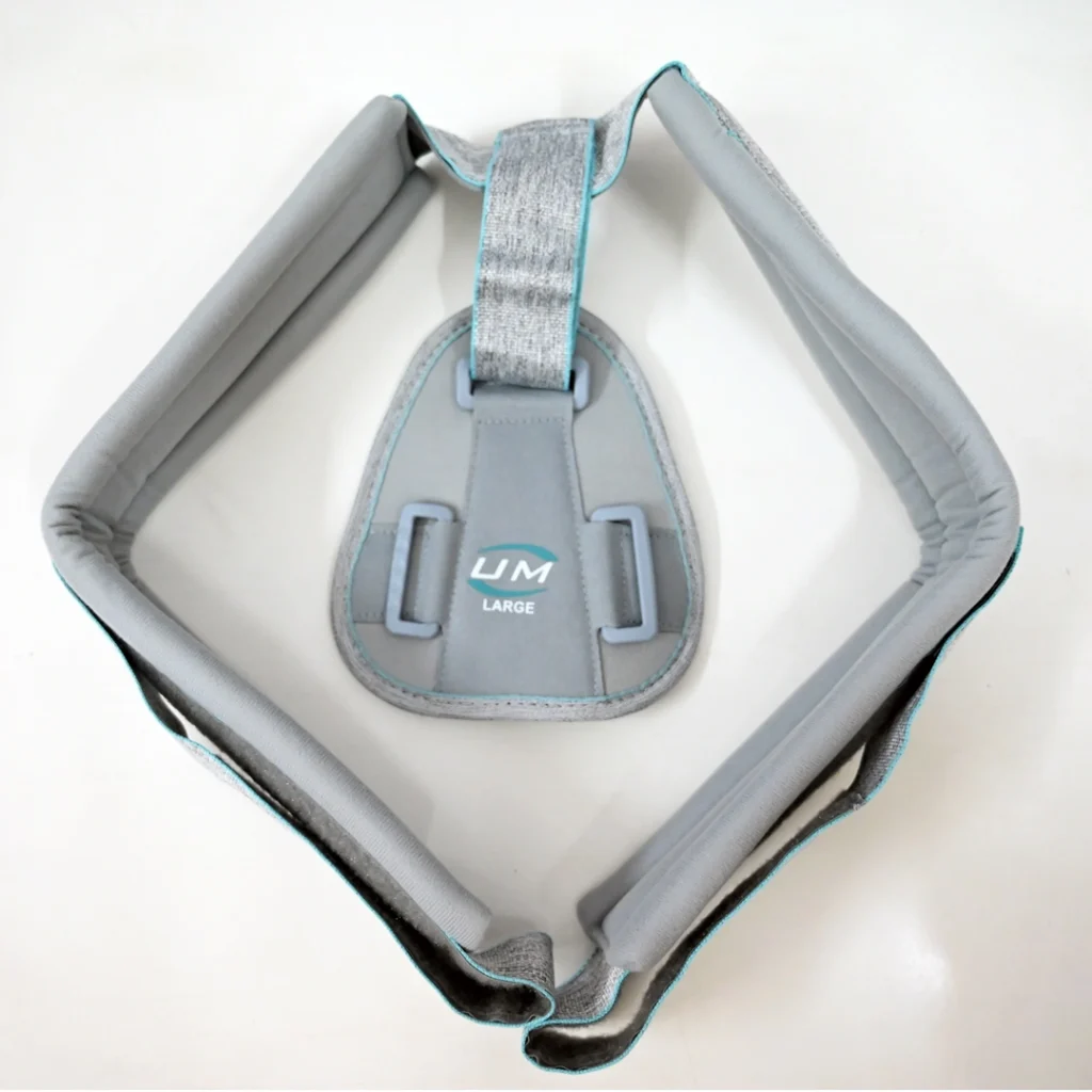 Two padded webbing straps adjust in a figure of eight design fixed to a pad over the scapulas reverse…